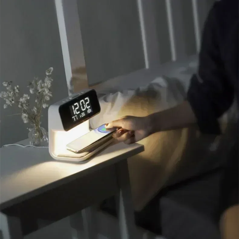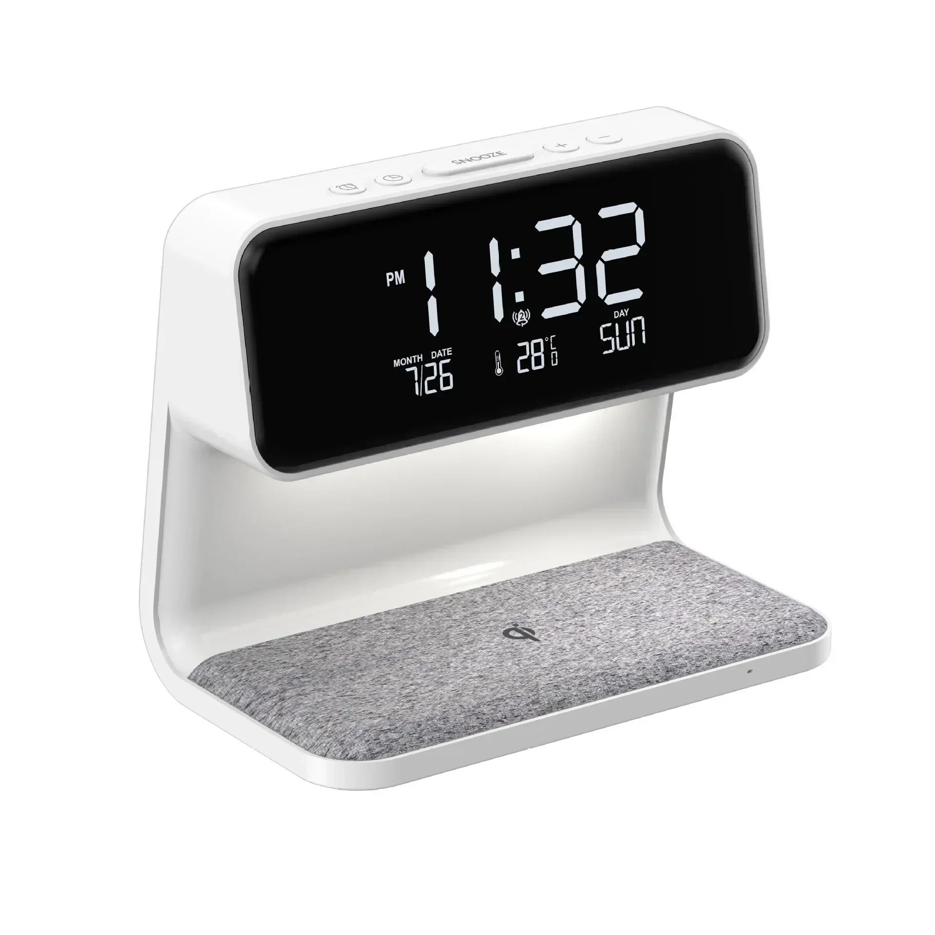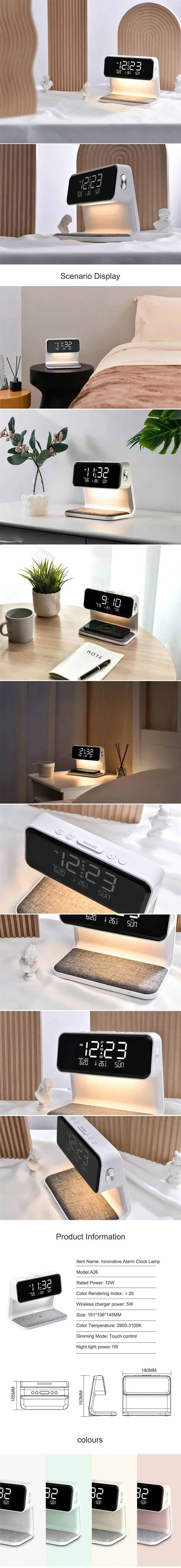 Creative 3 in 1 Bedside Lamp Wireless Charging LCD Screen Alarm Clock Wireless Phone Charger for Iphone Decoration